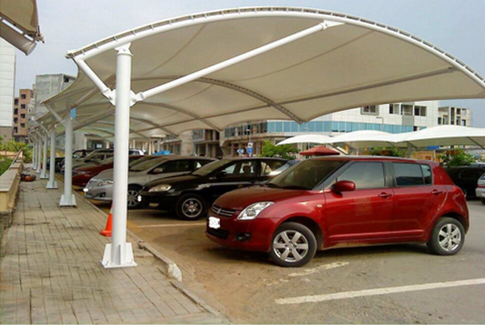 This product made by customer material requirment, basicly we use 100 mm to 75 mm round pipe of 16 gauze, 50 mm square pipe, 10mm plate,fabric cloth sheet and usebal hardware items...this product almost sale by 230 rs to 350 rs sq. ft. A car parking shed is a structure designed to provide covered or sheltered parking for vehicles. It can vary in size and design based on needs and available space. Key features of a car parking shed include: 1. **Coverage:** Provides protection from weather conditions like rain, snow, and sun. 2. **Materials:** Often made from metal, wood, or fabric, with a roof that can be corrugated steel, polycarbonate panels, or other materials. 3. **Design:** Can be a simple open structure with a roof or an enclosed building with walls and a door. 4. **Capacity:** Designed to accommodate a specific number of vehicles, ranging from a single car to multiple cars or even larger vehicles. 5. **Ventilation:** Adequate ventilation to prevent heat buildup and ensure air circulation. Car parking sheds are commonly used in residential areas, commercial properties, and industrial sites to protect vehicles and organize parking space.